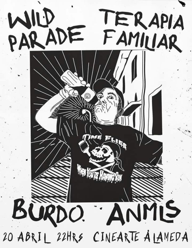 Ni oídos ni personas sensibles son aptas para este bullicio de día jueves a las 10 de la noche en el Cine Arte Alameda, si tuvo mucha paz interior este fin de semana santo, vaya a desordenar su aura este jueves, BURDO, Terapia Familiar, Wild Parade y ANMLS, se encargarán del resto.